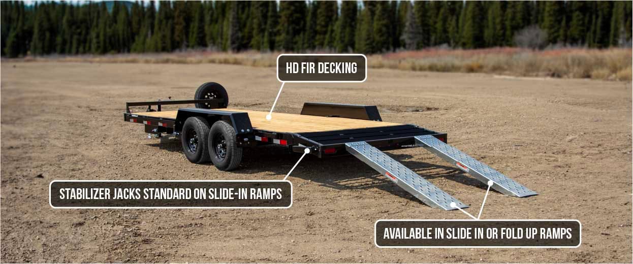 Our Flatdeck Equipment Trailers are built tough with HSS tubing frame for maximum frame strength. They resist bending, twisting, and wear — so you can haul heavy loads