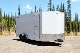 Enclosed Cargo Trailer 7.5’W x 16’L with V-Nose 86” Wall Height Rear Barn or Ramp Door 7,700 lbs. or Payload 5,389 lbs.