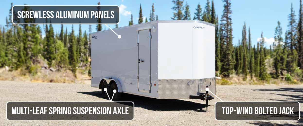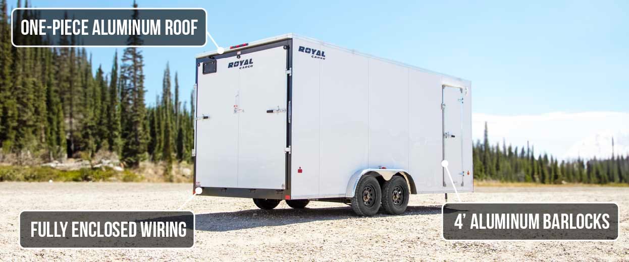 Royal Cargo Trailers are built to handle any weather with a rivetless aluminum exterior, one-piece aluminum roof, and enclosed wiring for extra protection. Your cargo stays safe and dry — even in the toughest conditions.