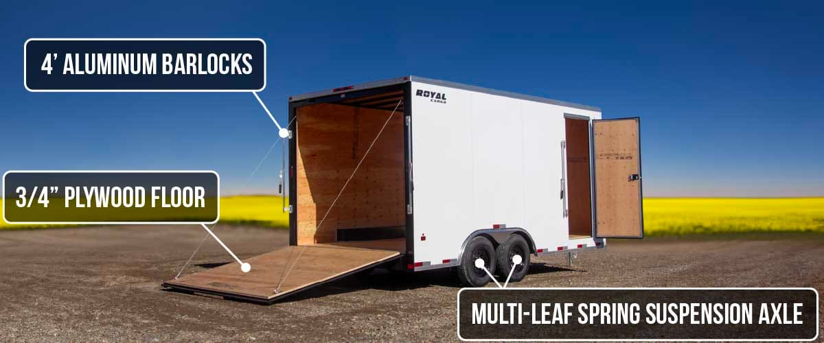 Royal Cargo Trailers are built to handle any weather with a rivetless aluminum exterior, one-piece aluminum roof, and enclosed wiring for extra protection. Your cargo stays safe and dry — even in the toughest conditions.